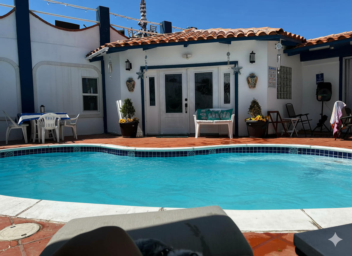 Comunidad privada. Anfitriones atentos que viven en la propiedad. El tipo de lugar donde puedes relajarte completamente—los niños pueden ser niños en un ambiente seguro, los adultos pueden aventurarse a Rosarito sin preocupaciones, o simplemente quedarse en la alberca todo el día si lo prefieren. Aquí, la relajación no es un lujo; es el estado natural.